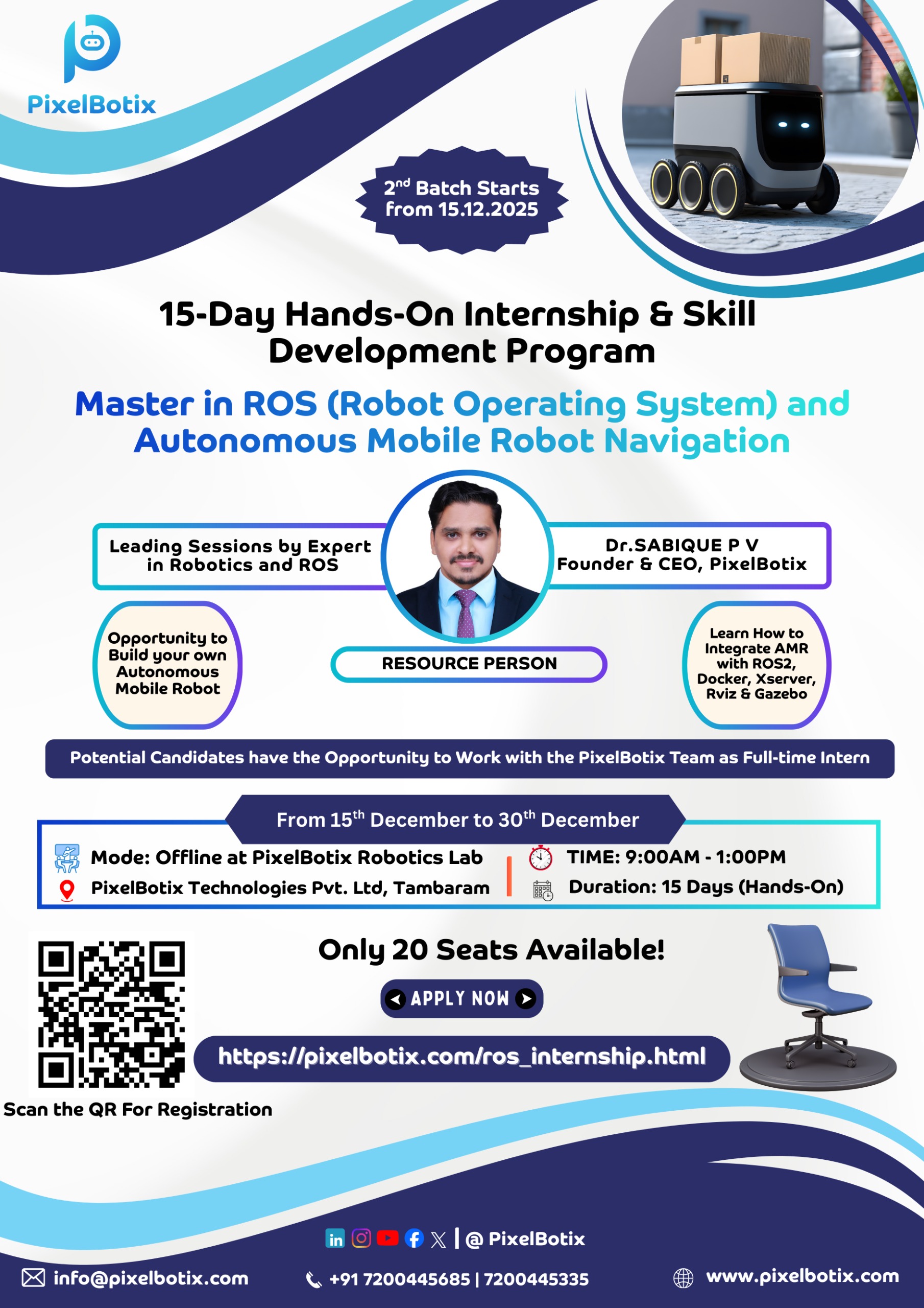 Your one-stop robotics internship to learn ROS2 from beginner to advanced level — fully hands-on, practical, and taught by India's Top Robotics Expert, Dr. P. V. Sabique.